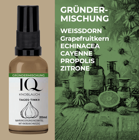 Unser Ansatz ist einfach: Anstatt Knoblauch vorschnell abzuwerten, lohnt es sich, die modernen Formen zu betrachten – wie die IQ-TINK® Tinktur. Sie bietet die jahrtausendealte Kraft des Knoblauchs in einer alltagstauglichen, zeitgemäßen Form.