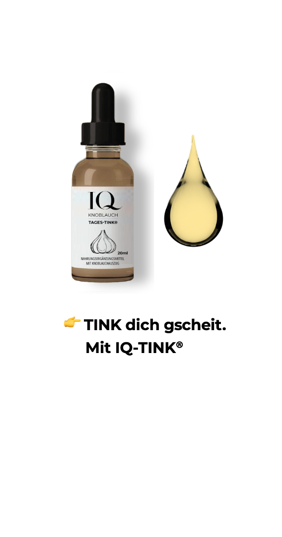 IQ-TINK.com ist als Firma nachhaltig, innovativ, gemeinschaftlich, vielfältig und zukunftsorientiert. Weil der Knoblauch Auszug lt unseren Kunden im Alltag sehr hilfreich ist und eine so vielfältige Pflanze, sehen wir den Knoblauch als Wegweiser in die Zukunft! Die Natur ist oft stärker als so manche Chemie. IQ-TINK hat mit seiner einzigartigen Formel jetzt den Knoblauch endlich für den Alltag nutzbar gemacht. Dank des praktisch wasserlöslichen Knoblauch Auszugs gibt es eine bis zu 90% verbesserte Bioverfügbarkeit – und das ohne unangenehmen Körpergeruch. Damit ist der IQ-TINK Knoblauch Auszug mehr als nur ein Produkt; es ist eine transformative Kraft.